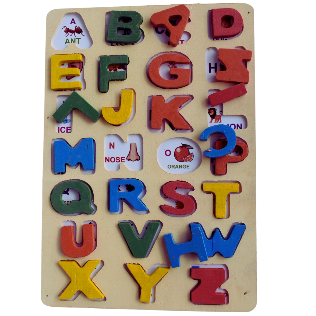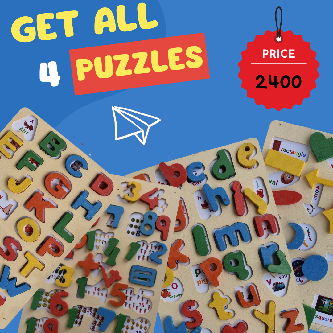 This all-in-one wooden puzzle set includes capital letters, small letters, numbers, and shapes — perfect for building early literacy, numeracy, and recognition skills through fun hands-on play. Ideal for toddlers and preschoolers!