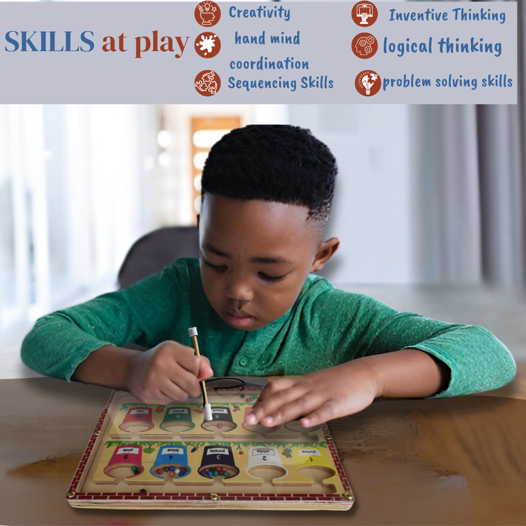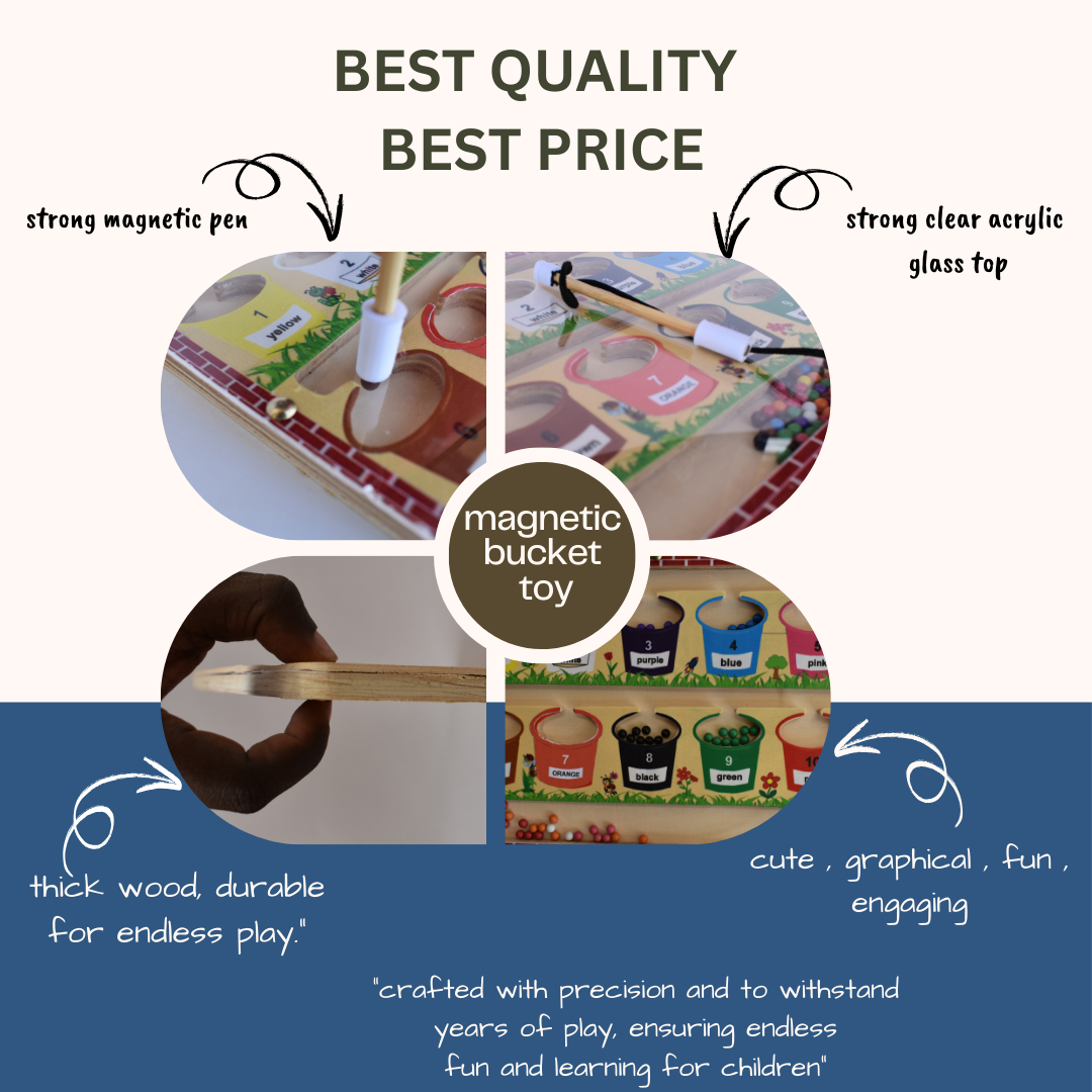 Embark on a fun adventure with our Magnetic Bucket Balls Maze! Kids use a magnetic wand to guide colorful balls into respective bucket enhancing problem-solving and coordination skills.
